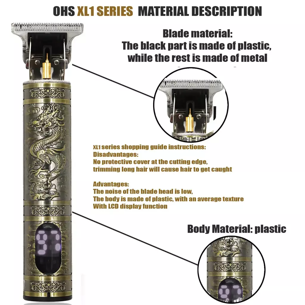 O objetivo principal desta máquina de cortar cabelo T9 é esculpir padrões de penteado e aparar barbas.Não é recomendado usá-lo para cortar cabelos longos.Se você usá-lo para aparar cabelos longos, tome cuidado para não tocar na haste no centro da lâmina ao usá-la, caso contrário ela ficará presa na haste e fará com que os cabelos fiquem presos.No entanto, nossa loja possui um produto para evitar esta situação, nossa''OHS S3''e ''OHS SL2 Dragão Plus''produtos, que vêm com capas de proteção capilar anti-beliscão na lâmina.Você pode comprar este produto.